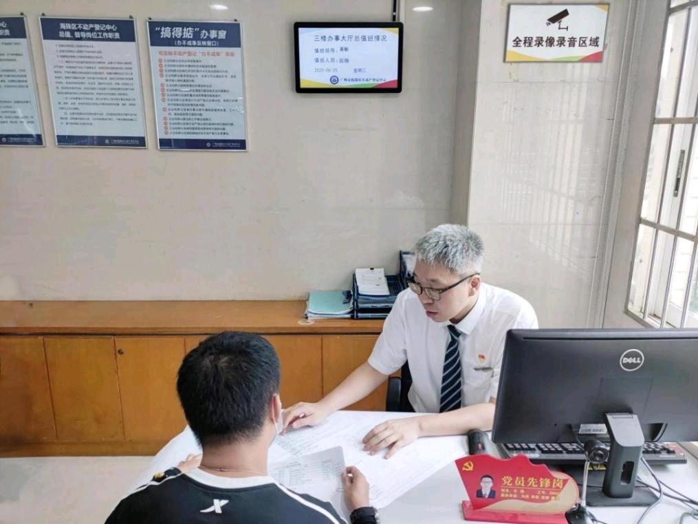 面对企业紧急、大量的登记需求,海珠区分局用灵活多元的服务模式,践行责任担当。在办理越秀华城房地产公司449宗不动产首次登记批量业务诉求时,该分局启动联动机制,并创新采用“容缺受理”模式——在企业核心材料齐全的前提下先行审核,成功化解了集中受理压力,为项目推进抢占了关键时间。企业赠送的锦旗,正是对“优质服务、高效办事”最有力的认可。